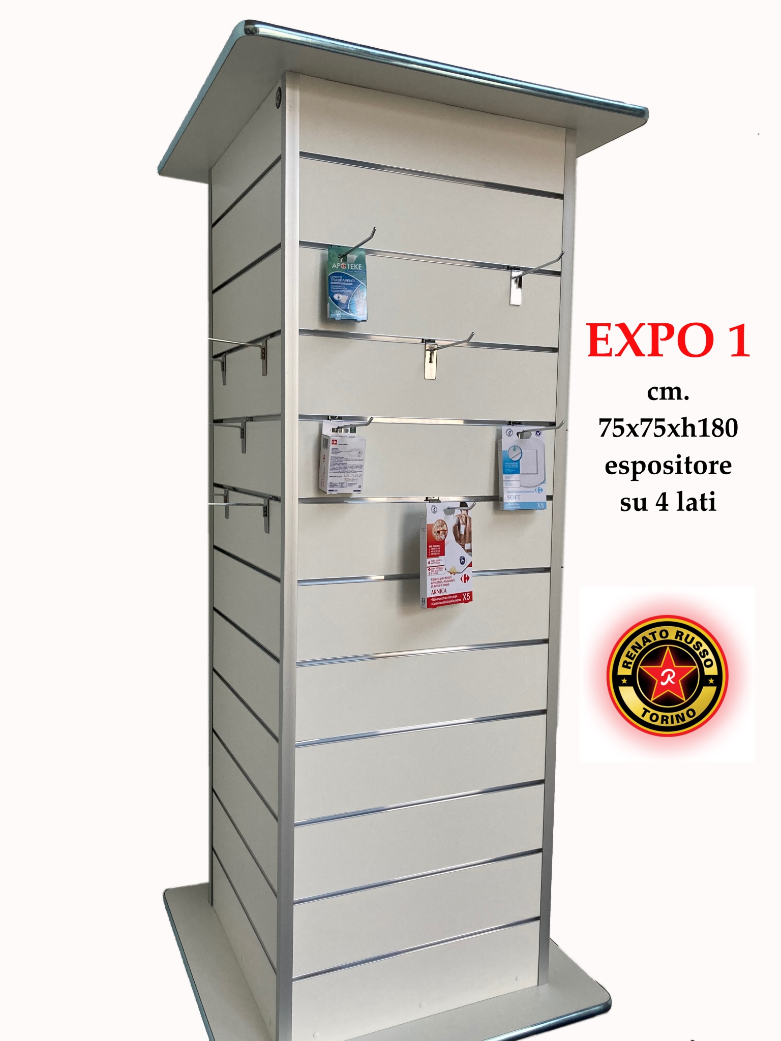 Espositore con 4 lati espositivi, realizzabile con le misure che gradisci chiedi info e prezzi |